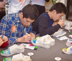 由校园学生社团陪伴引领自闭症及特殊儿童进行美术创作。 同达人本携手北京三一基金阳光雨人专项基金, MRMONKIES为自闭症儿童举办一场球鞋彩绘 活动。